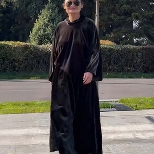 👗 Elegant Black Velvet Two-Piece Set – Flowing Top & Skirt for Effortless Sophistication