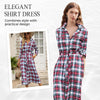 🧵 Women’s Plaid Belted Shirt Dress – Classic Button-Down Long Sleeve Dress
