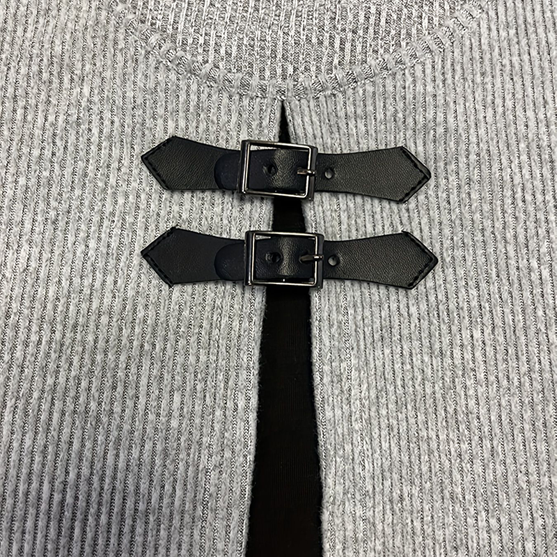 Statement faux leather buckles add a modern, fashion-forward edge. These accents elevate the dress from simple to stylish, making it an eye-catching piece in any setting.