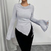 🔥Black Friday Sale 49% OFF🔥Funnel Neck Flare Sleeve Knit Top with Side Drawstring