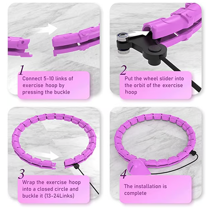 BEGINNER-FRIENDLY – Designed to stay securely in place, the hoop provides stability and comfort for beginners, with adjustable links to suit different waist sizes and ensure an effective workout.