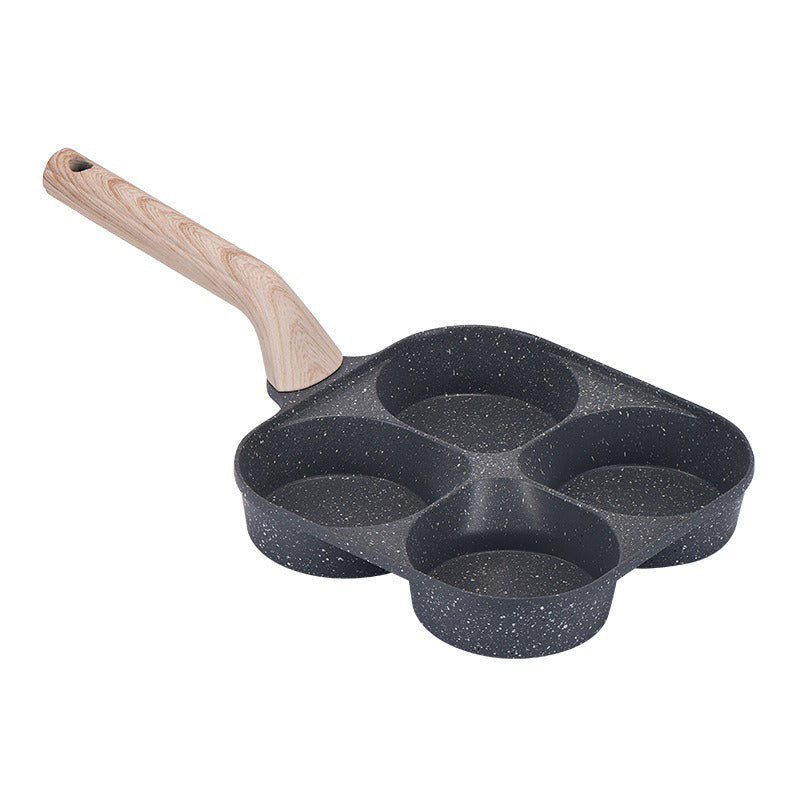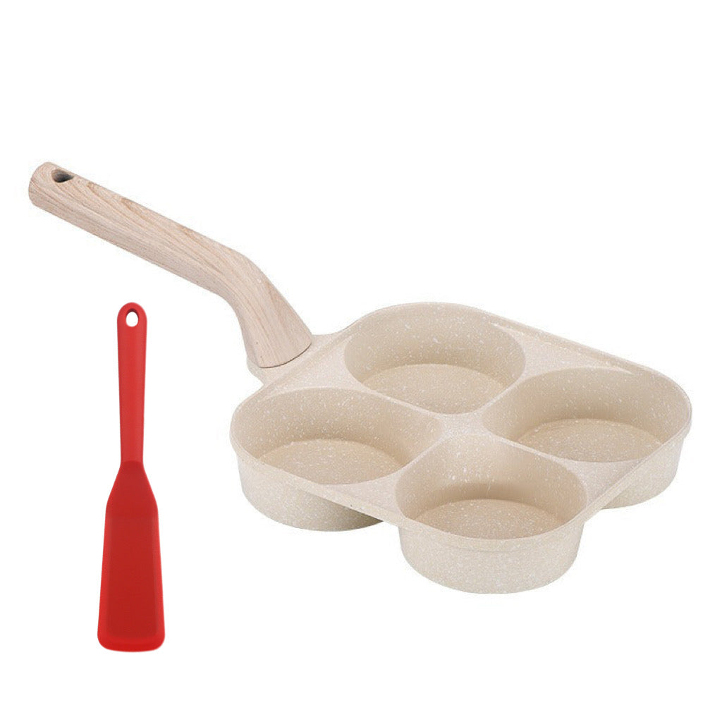 4-Compartment Design + Deepened Anti-Splatter + Maifan Stone Non-Stick + Even Heat Conduction + Anti-Scald Handle – Beige/Gray Options! 🥚