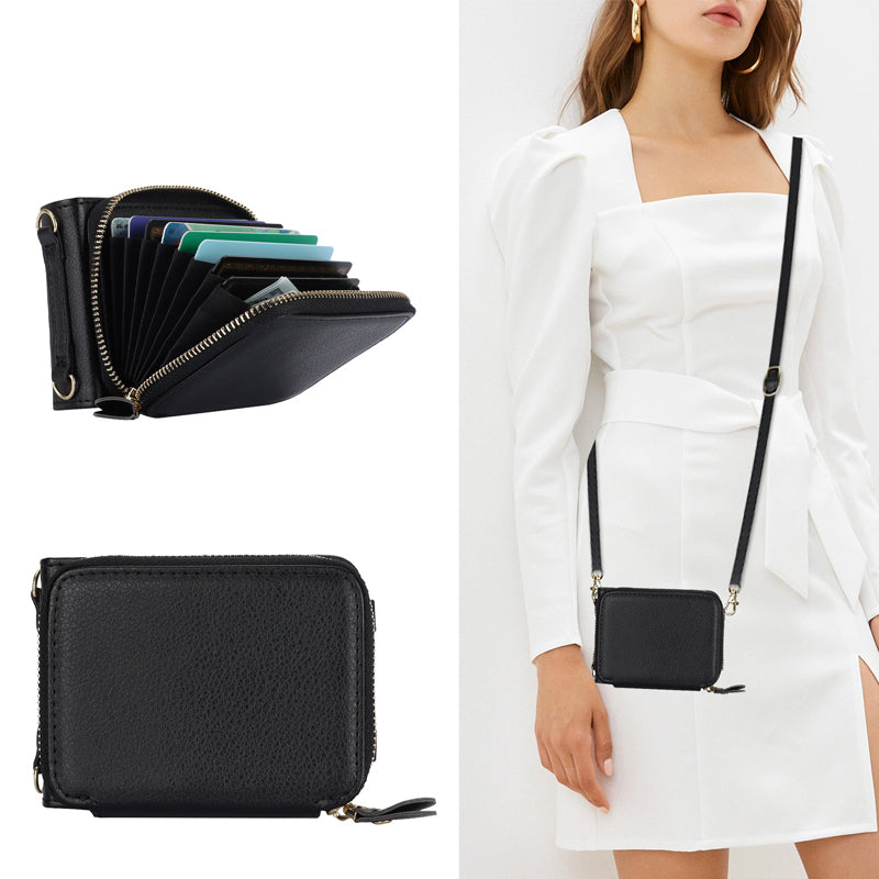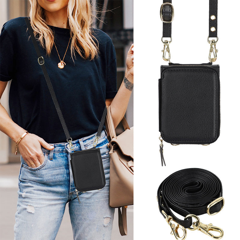 DESIGN: Zipper Closure Make sure safety inside, Don't worry about forgetting or losing when you go out. Crossbody Strap & Wrist Strap The length of the can be adjusted and taken off. It is perfect for travelling, simply going out or usual daily life