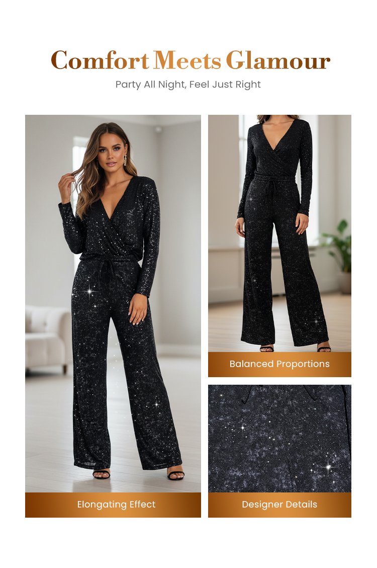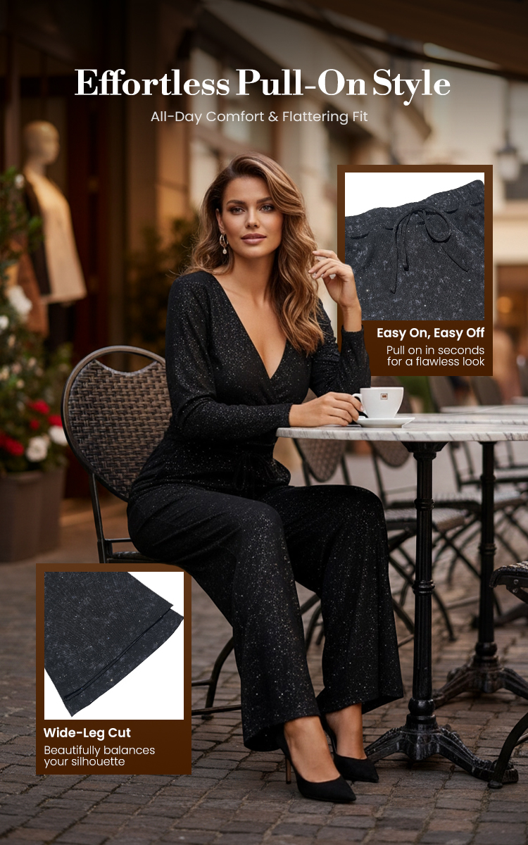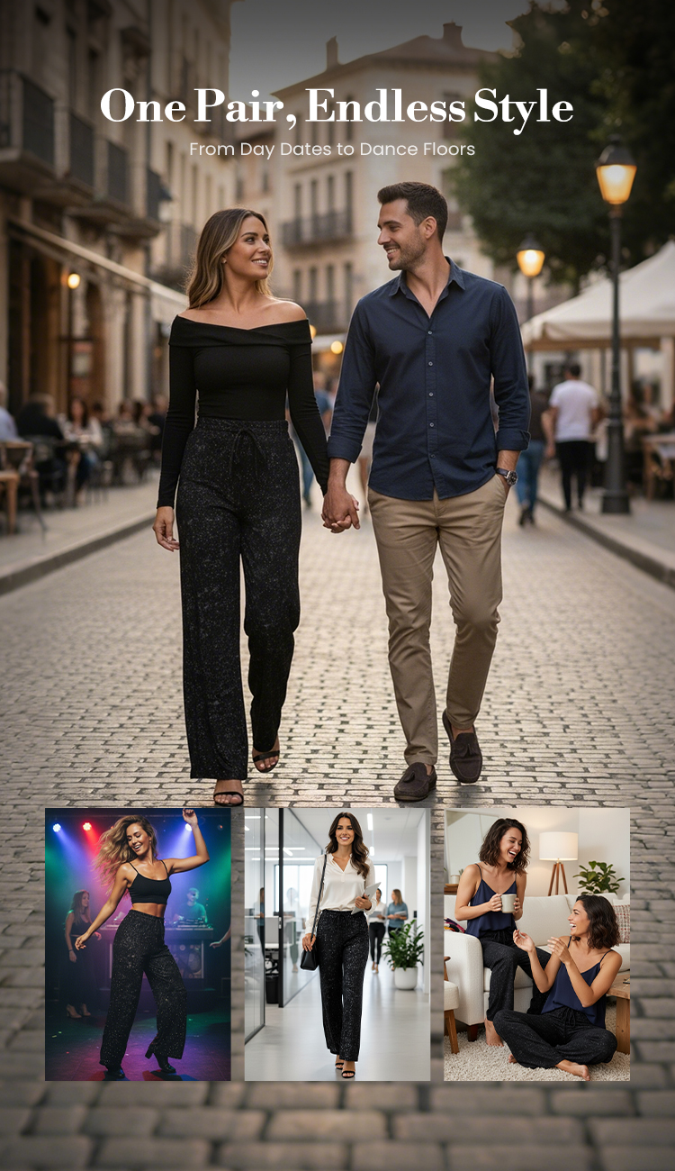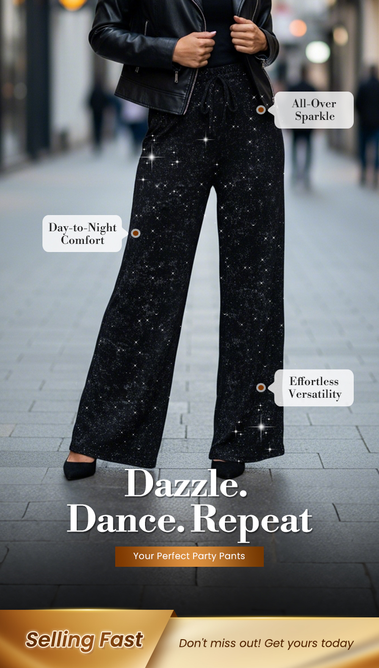 💖LAST DAY SALE 66% OFF🥰Women's Sequin Sparkle Wide Leg Pants with Elastic Waistband