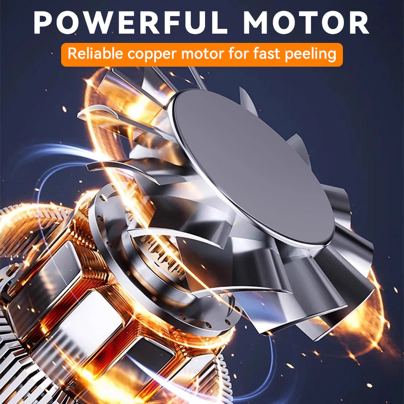 POWERFUL COPPER WIRE MOTOR – Equipped with a high-performance copper wire motor, this electric peeler ensures efficient and fast peeling of various fruits and vegetables. The motor delivers consistent power, allowing even small fruits to be peeled effortlessly without stalling or losing performance. Its durability and reliability make it a time-saving addition to any kitchen.