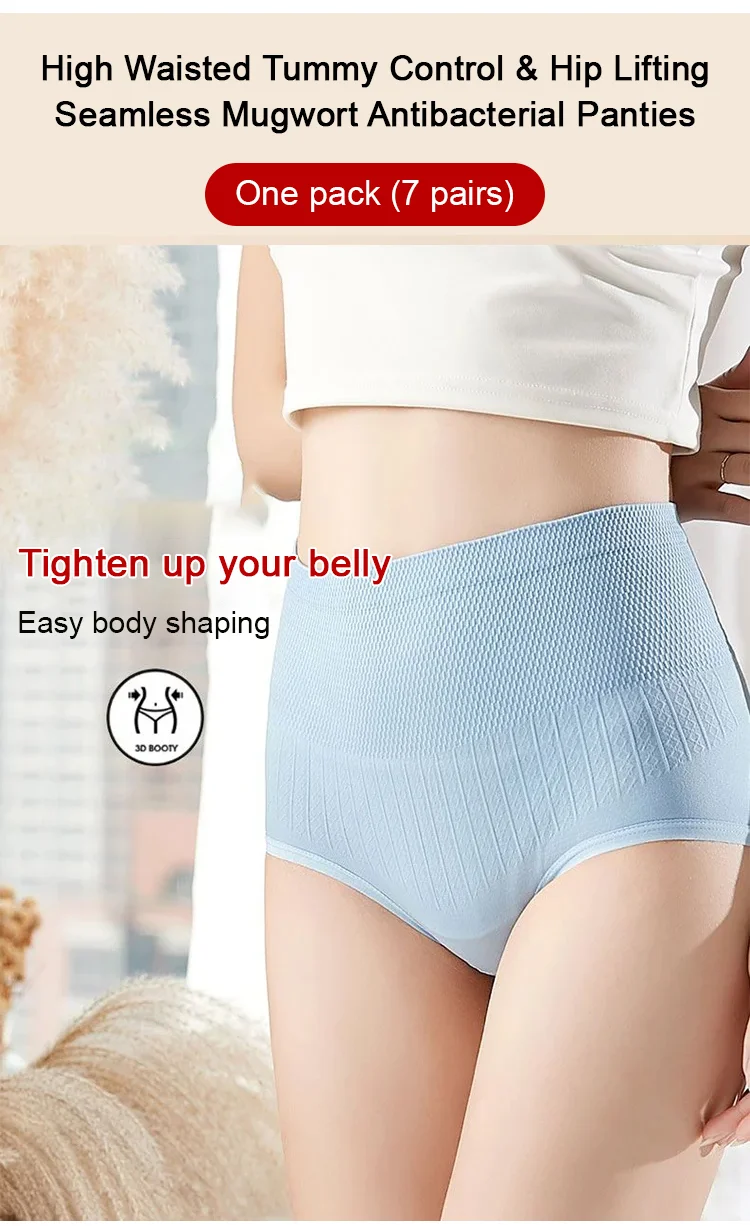 Increase quantity for High Waisted Tummy Control & Hip Lifting Seamless Mugwort Antibacterial Panties