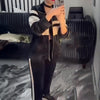 Features bold contrast stitching and tonal stripe detailing along sleeves, sides, and legs for a sporty-chic aesthetic. Balances simplicity with personality, elevating the set from basic loungewear to fashion-forward casual wear.