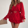 Women's Fashion Long Sleeve V-Neck Mini Dress