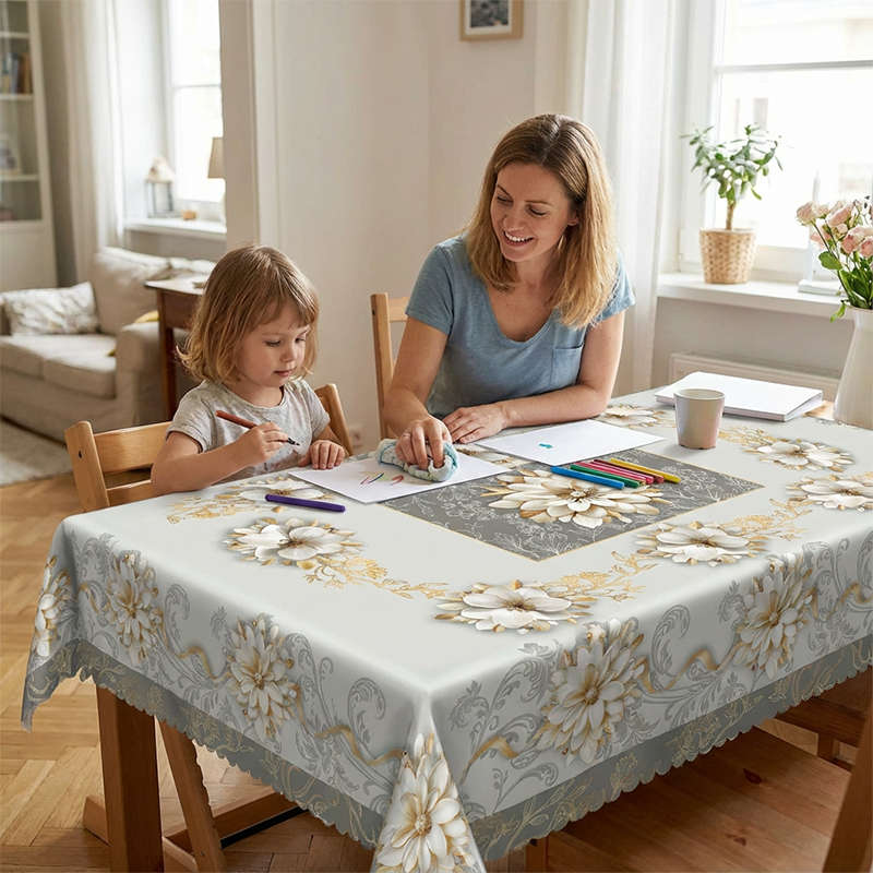 💮🍽️ Limited-Time 50% Off! Elegant Waterproof Embossed Floral Tablecloth – Oil-Resistant, Wrinkle-Free & Machine Washable